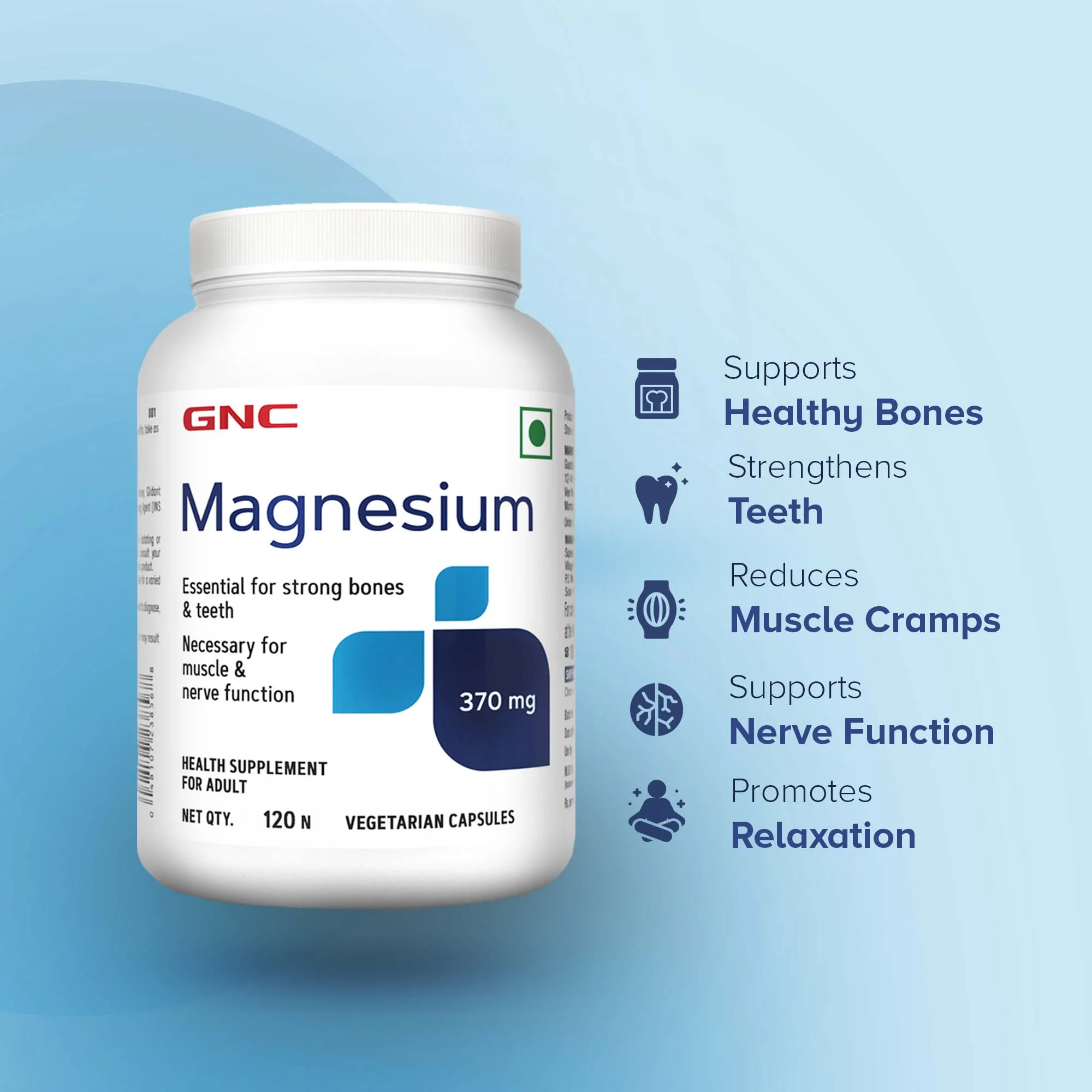 - Each serving of GNC Magnesium will provide 370 mg of magnesium, which meets the RDA set by ICMR for women.
