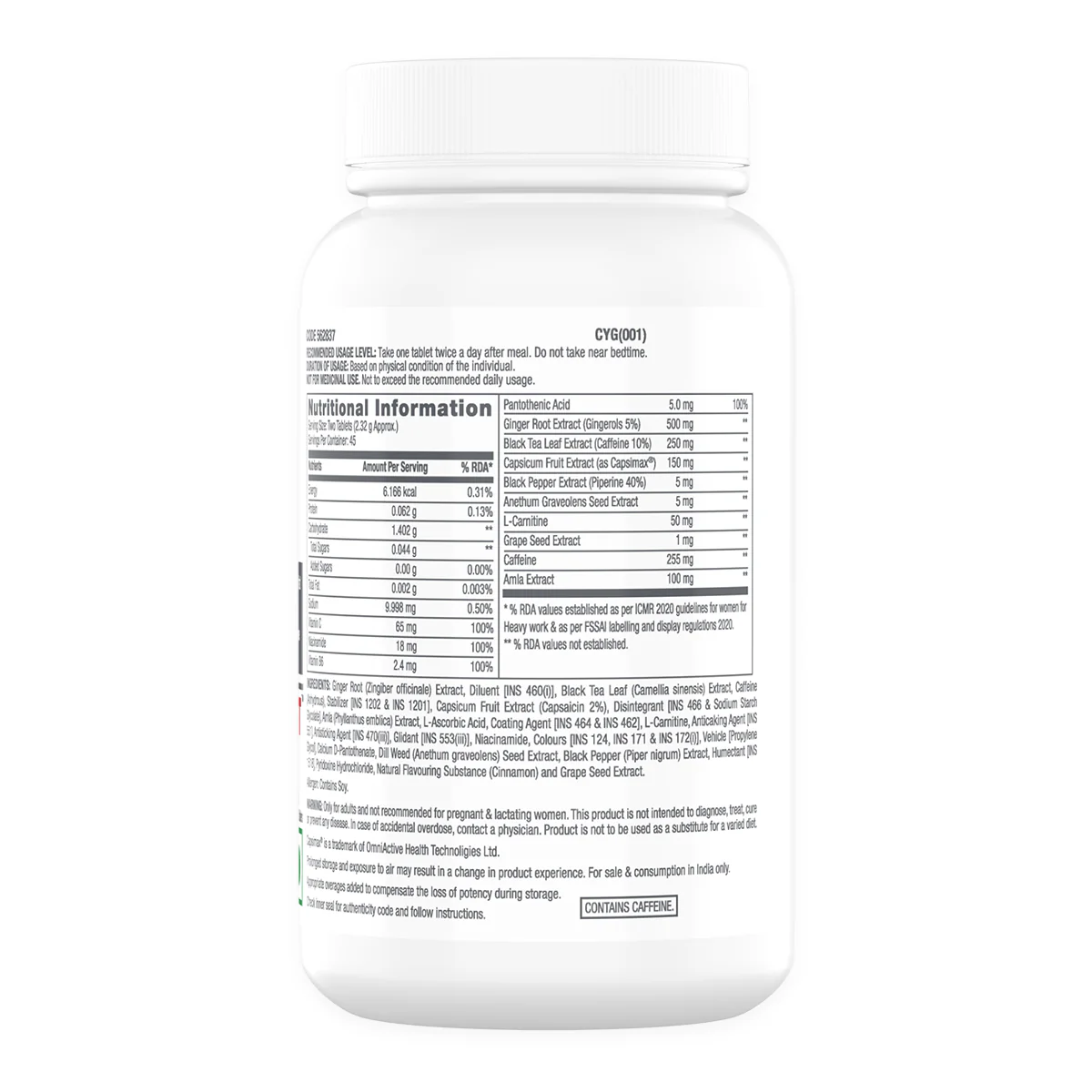- Extracts of Piperine, Black Tea Extract, Capsicum Extract, Shatahva,Grape Seed. Extract,Ginger,Caffeine,L-Carnitine with Vitamin Tablets helps boost metabolism.